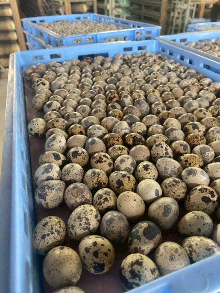農場の風景 2025.10.9幡野ファーム、農場の風景 2025年10月9日 hatanofarm ある日の農場の様子。 今日も良く晴れてとてもいい天気になりました🌞 風がよく吹いて涼しくすごく気持ちがいいです🌬 そんな日の成鶉の様子をお届けします👀 今日もたくさんのたまごを集めることが出来ました! 午前中にたまごを回収していますが、終わった後から続々と新しいたまごを産んでくれています🥚 今日は1羽奥に脱走羽を見つけました👀 ↓↓↓ 脱走羽は後でしっかりとゲージへと戻します!!
